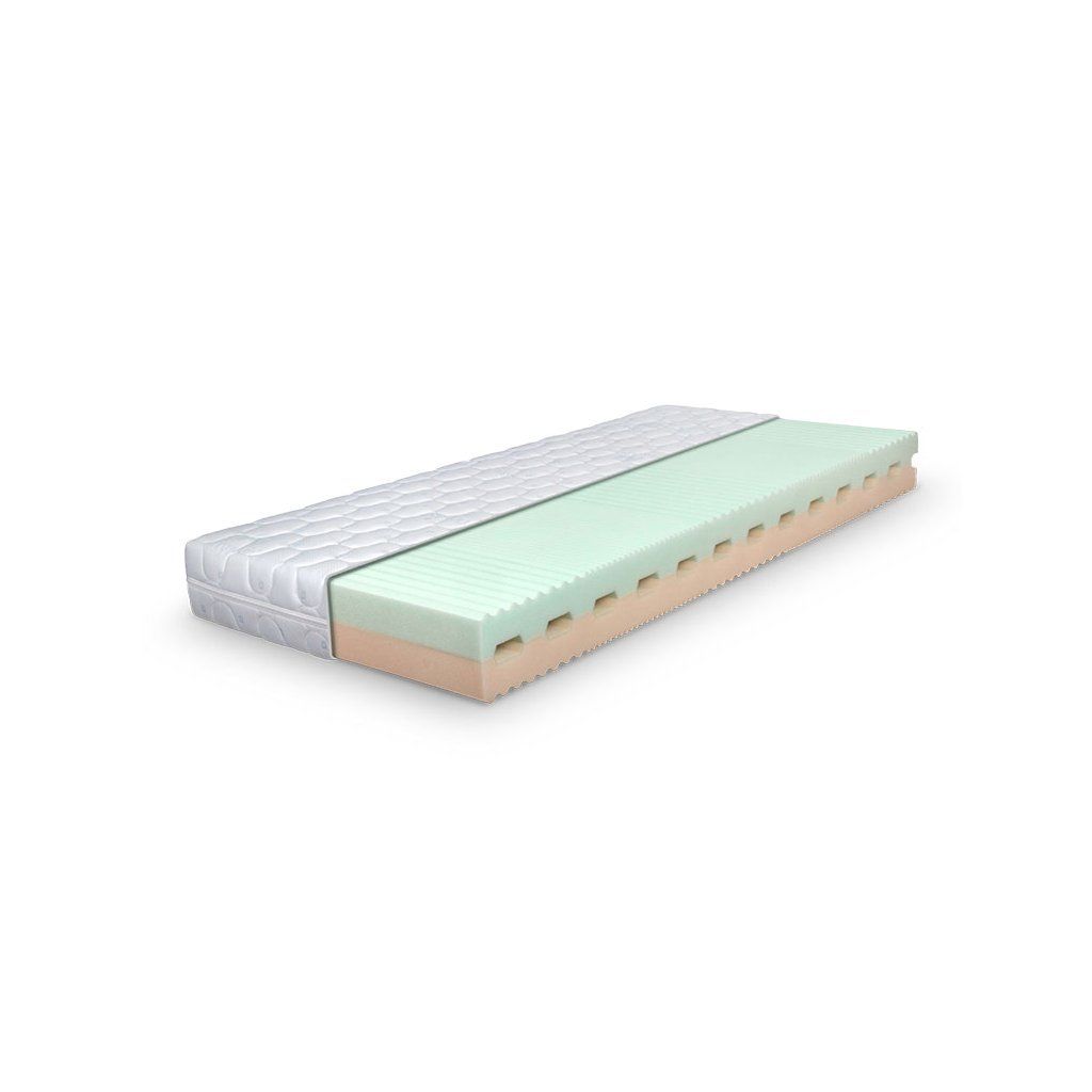 Velmi kvalitní 5-zónová matrace Řešeto Adell je vyrobena ze dvou důmyslně prořezaných dílů s horizontálními průchody pro dokonalé odvětrání jádra. Jádro matrace je vyrobeno z vysoce kvalitní a prodyšné Sleepfoam pěny, které vyniká výbornou elastickou, tvarovou stálostí a dlouhou životností. Matrace Řešeto Adell se díky výraznému prořezu dokáže dokonale přizpůsobit obrysům lidského těla a tím se zvyšuje komfort spánku. Díky rozdílným objemovým hmotnostem Sleepfoam pěn tato matrace poskytuje tvrdší i měkčí stranu. Matrace je vhodná na lamelový rošt pevný i polohovací a je určen pro váhovou kategorii do 100 kg. Celková výška včetně potahu je 20 cm.Potah LyocellLyocell je inovativní a ekologický textilní materiál vyrobený z celulózy, obvykle získávané z dřevin, jako je eukalyptus, buk nebo dub. Proces výroby Lyocellu je šetrný k životnímu prostředí, protože při výrobě nejsou použité žádné škodlivé chemikálie. Tento materiál je známý svou neuvěřitelnou měkkostí a jemností, což z něj činí ideální látku pro výrobu oděvů, ložního prádla a dalších textilií, které přicházejí do přímého kontaktu s pokožkou. Lyocell má vynikající vlastnosti při odvádění vlhkosti, což pomáhá udržovat tělo suché a zajišťuje pohodlí během spánku. Materiál je také prodyšný a termoregulační, což znamená, že v teplém počasí ochlazuje a v chladném naopak zahřívá. Díky své odolnosti je Lyocell pevný a má dlouhou životnost, přičemž si zachovává svůj tvar i po opakovaném praní. Kromě toho je hypoalergenní a vhodný pro lidi s citlivou pokožkou. Celkově je potah Lyocell nejen pohodlný, ale také udržitelný, což z něj činí vynikající volbu pro moderní matrace.Doplňkové parametry