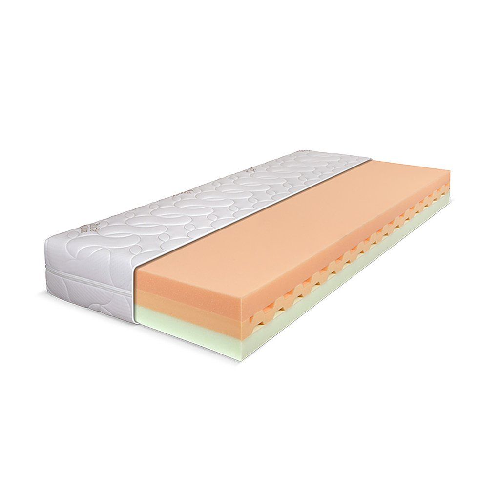 Matrace Agatha od českého výrobce matrací Řešeto je vyrobena z kvalitní rakouské pěny Eurofoam, které vynikají výbornou elasticitou a vysokou kvalitou s dlouhou životností. Výrazná profilace středového jádra z vysoce pružné HR pěny zajistí dokonalé přizpůsobení ergonomii lidského těla a zvyšuje prodyšnost. Tyto matrace jsou vhodné pro páry – partneři mají totožné matrace, ale každý z nich si může zvolit oblíbenou tuhost. Ložná plocha matrace je rovná bez profilací. Matrace Agatha je vhodná na lamelový rošt pevný i polohovatelný. Celková výška matrace Agatha je cca 20 cm.Potah Silver ActiveLuxusní matracový potah s aktivním stříbrem, které zamezují tvorbě škodlivých bakterií. Kromě prevence vzniku plísní má také schopnost zabraňovat vzniku nepříjemného zápachu a přispívá k vyšší kvalitě spánku a bezpečí. Potah Silver Active Nadýchaný luxusní vzhled, příjemně měkký a hladký na dotek. Potah je také opatřen děleným zipem pro snadnou údržbu, lze jej rozpůlit na dvě samostatné části a prát i v menší pračce na 60°C.Doplňkové parametry