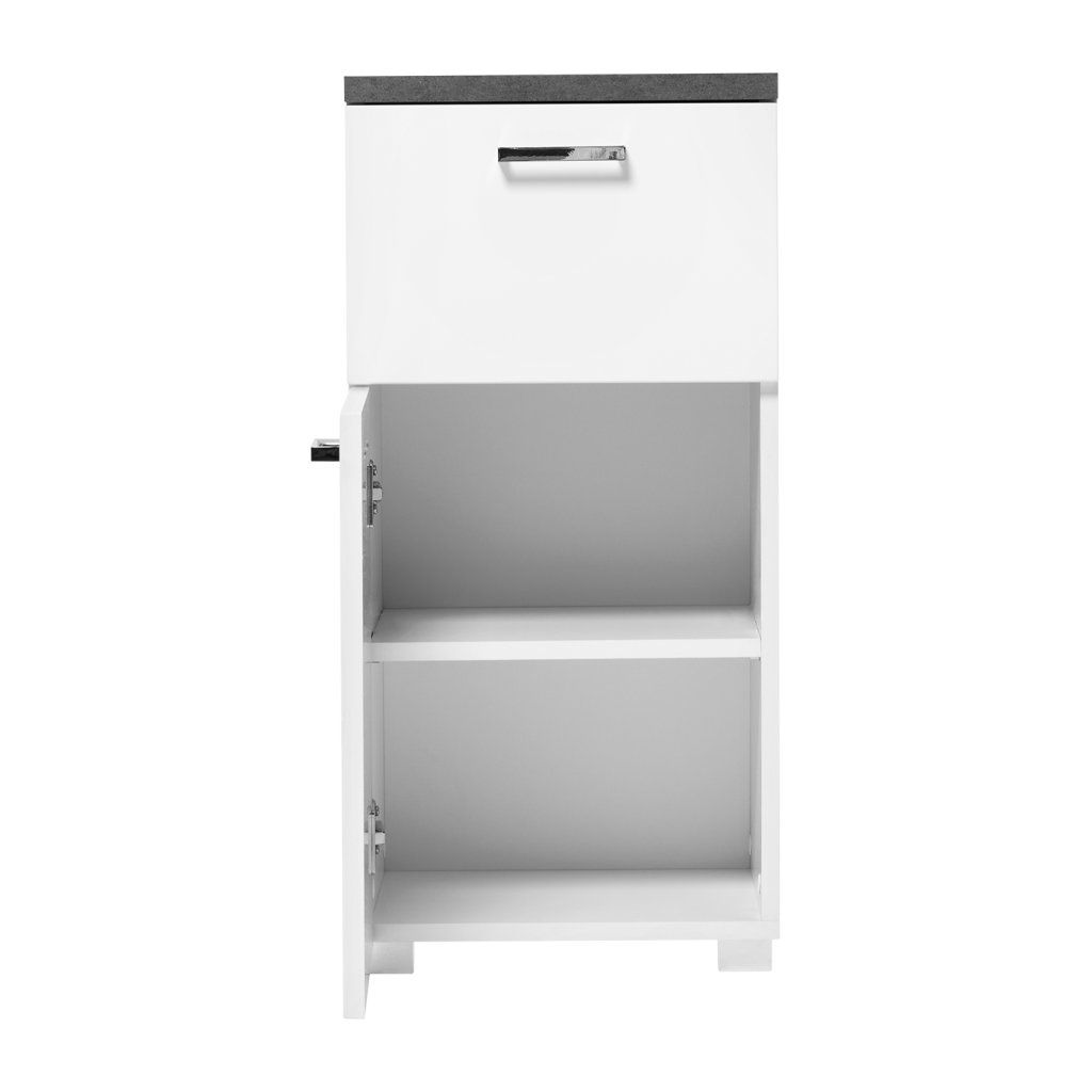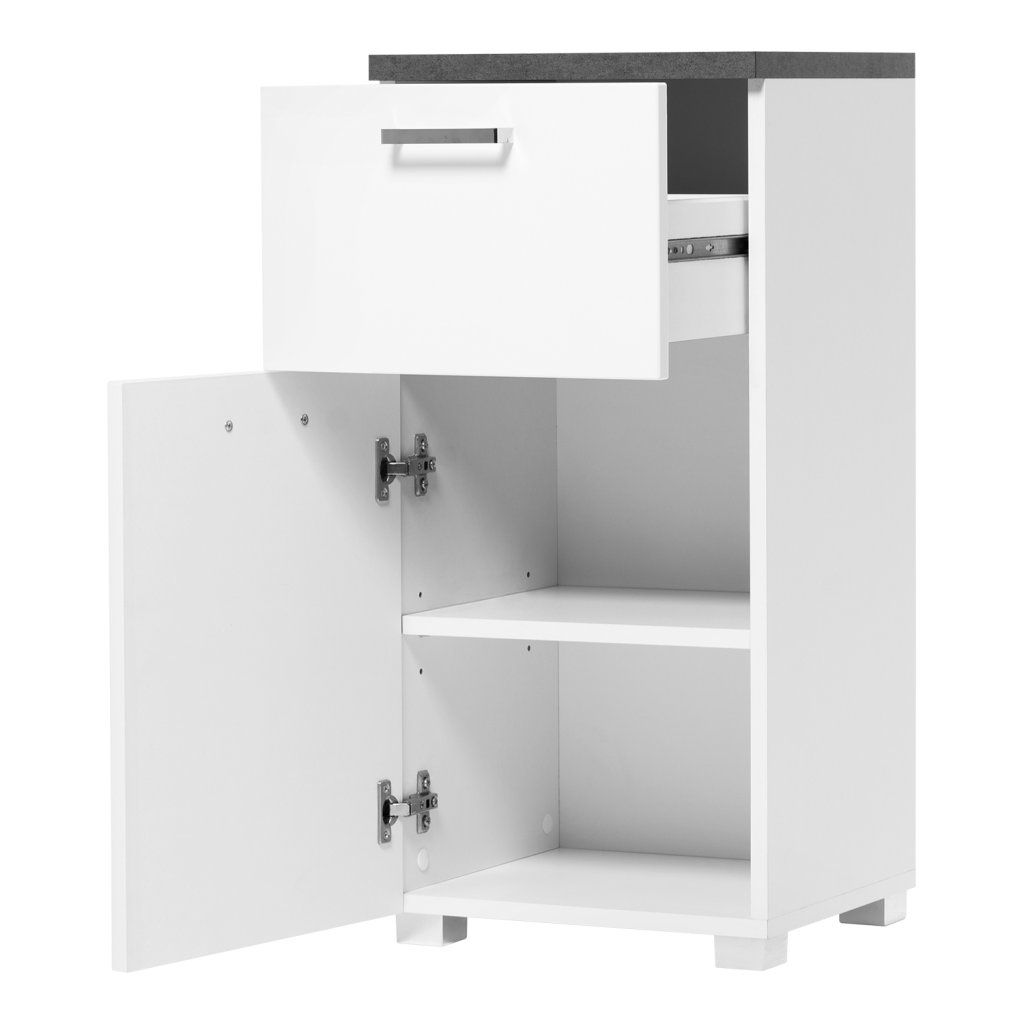 barevné provedení bílá / imitace tmavého betonu 1 dvířka, 1 police, 1 zásuvka s kovovými pojezdy vhodný doplněk ke skříňkám PRAYA FN2766, FN2767, FN2768 a FN2800 všech pět produktů možno také zakoupit jako sestavu FN27650Doplňkové parametry