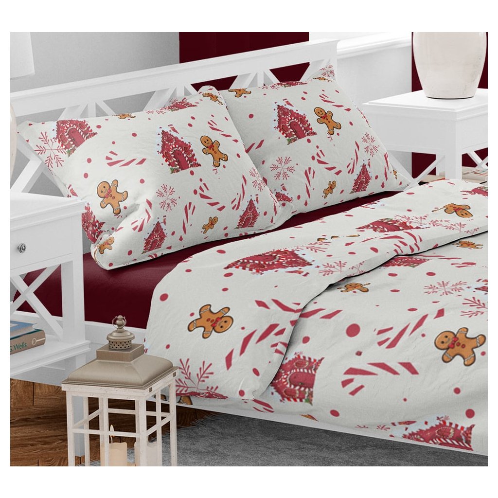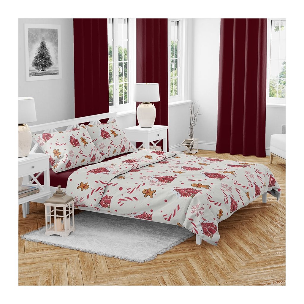 Vánoční bavlněné povlečení Domečky červené 140x200, 70x90 cm