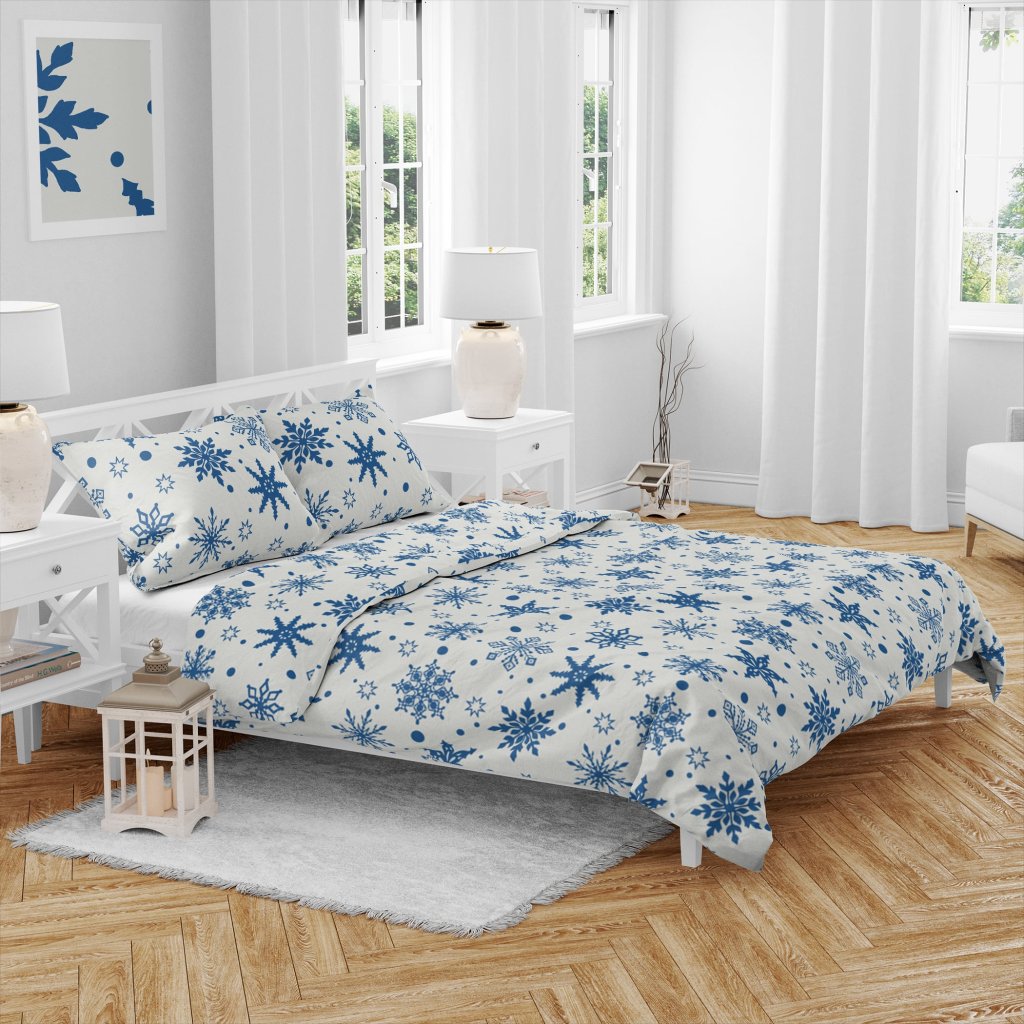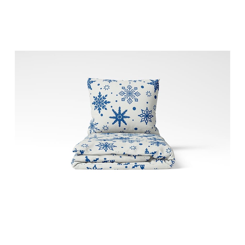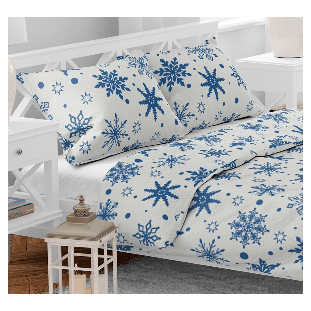 Vánoční bavlněné povlečení Vločky modrobílé 140x200, 70x90 cm