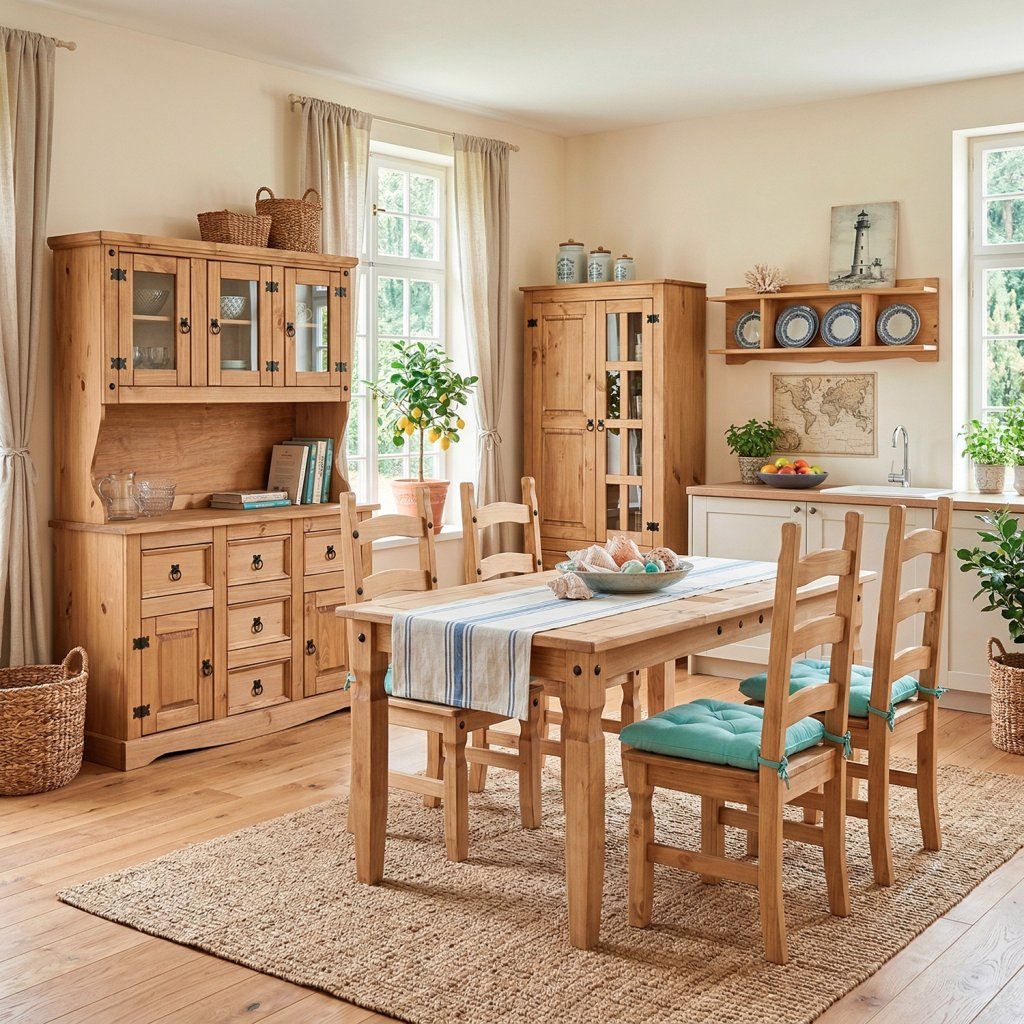 materiál masiv borovice voskovaná v medovém odstínu výška sedu 46 cm součást sestavy CoronaDoplňkové parametry
